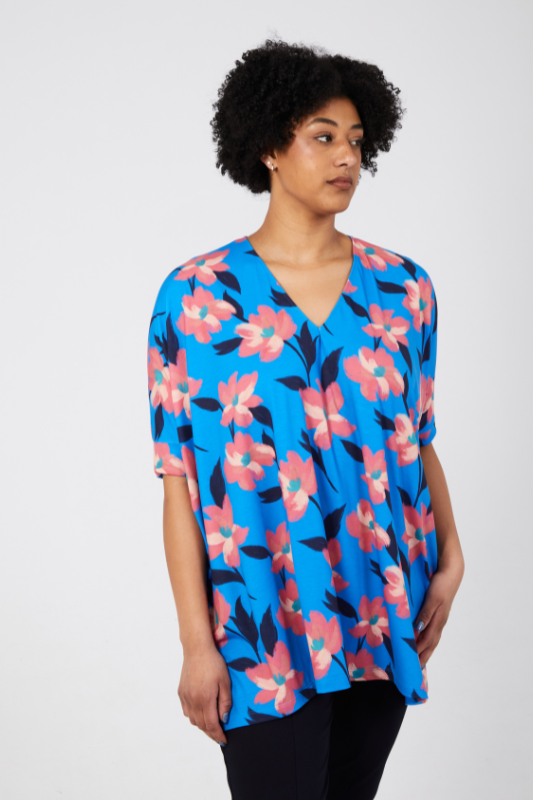 Revive your wardrobe with our coveted bestseller, the Amber top! Embrace sustainability with its ultra-soft recycled jersey. The vibrant San Marino print in azure adds a splash of joy to every occasion. Versatile in navy and denim, this easy-wear silhouette promises effortless style and endless possibilities. Upgrade your look and brighten up your days with the Amber top!